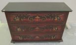 Wood painted chest of drawers with painted designs on drawers, 35"h., 45"w., 18"d. Wood painted chest of drawers with painted designs on drawers, 35"h., 45"w., 18"d.