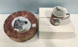 10 zebra plates by Lynn Chase 1995, and 4 zebra mugs. 10 zebra plates by Lynn Chase 1995, and 4 zebra mugs.