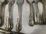Oneida, 17 place spoons, 9 place forks, 9 salad forks, 10 knives, serving spoon and fork. Oneida, 17 place spoons, 9 place forks, 9 salad forks, 10 knives, serving spoon and fork.