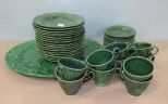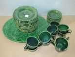 England, Davenport Builelgia, eighteen 8"dia. plates, twelve saucers, eleven cups, and Majolica Green platter 18"w. England, Davenport Builelgia, eighteen 8"dia. plates, twelve saucers, eleven cups, and Majolica Green platter 18"w.