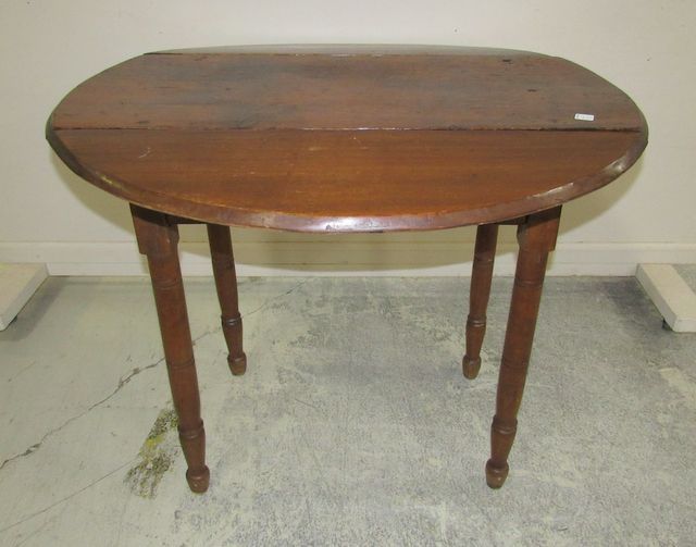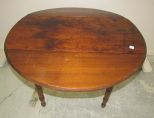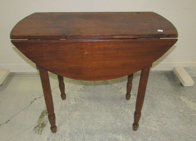 Primitive style drop leaf table, needs work on leaf, top has dark spots and wear compared to side leaves, 29"h., 35"w. Primitive style drop leaf table, needs work on leaf, top has dark spots and wear compared to side leaves, 29"h., 35"w.