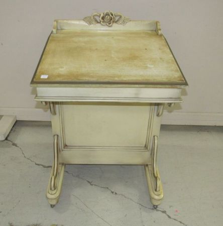 Painted Davenport desk with lift top storage, writing slope, three drawers on side with rose pulls, 33"h., 24"w., 24"d. Painted Davenport desk with lift top storage, writing slope, three drawers on side with rose pulls, 33"h., 24"w., 24"d.