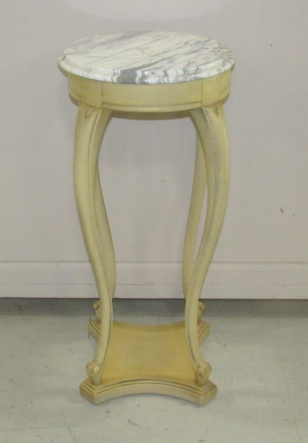 Painted mahogany, vintage, Italian marble, french style, 30"h., 15"dia. Painted mahogany, vintage, Italian marble, french style, 30"h., 15"dia.