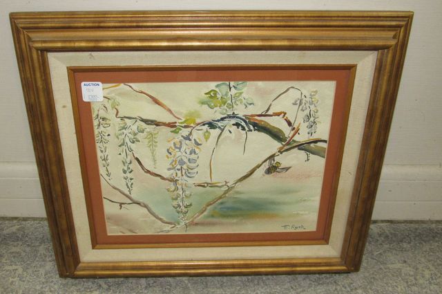 Watorcolor of limbs and flowers by T. Rush, framed, 16"h., 18"w. Watorcolor of limbs and flowers by T. Rush, framed, 16"h., 18"w.