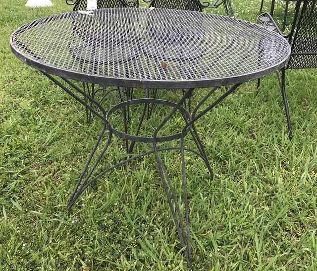 Wrought black painted mesh top patio table, 35"dia., 28"h. Wrought black painted mesh top patio table, 35"dia., 28"h.