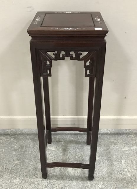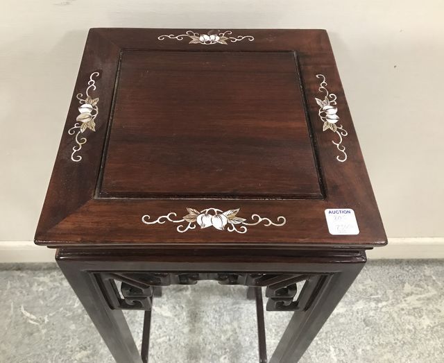 Chinese chippendale fern stand with mother on pearl inlay designs, 34"h., 12"dia. Chinese chippendale fern stand with mother on pearl inlay designs, 34"h., 12"dia.