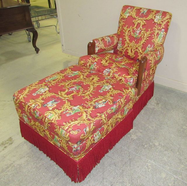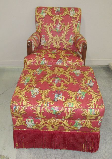 938 Upholstered Red Fabric Arm Chair and Ottoman