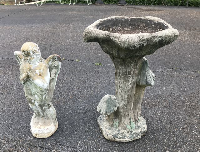 958 Concrete Bird Bath Pedestal and Concrete Angel