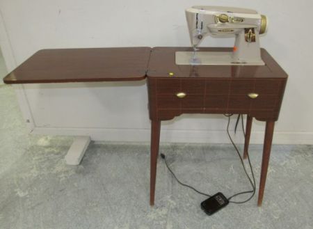 Singer Model 500A machine in cabinet, has foot paddle, 31"h., 24"w., 16"d. Singer Model 500A machine in cabinet, has foot paddle, 31"h., 24"w., 16"d.