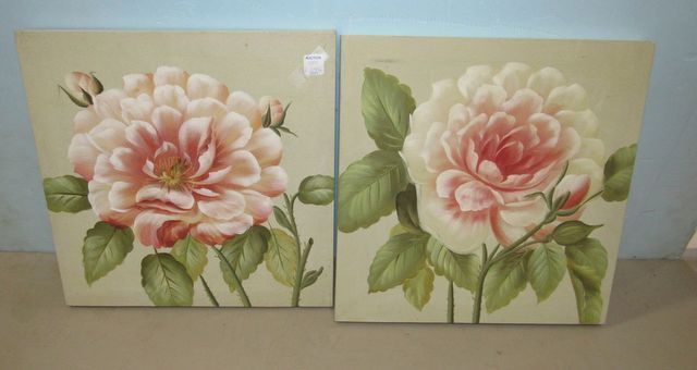 Pair of Giclee printed flower panels, wall decor, 16"sq. Pair of Giclee printed flower panels, wall decor, 16"sq.