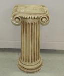 Distressed column style vase stand, has chip on base rim, 24"h., 12"w. Distressed column style vase stand, has chip on base rim, 24"h., 12"w.