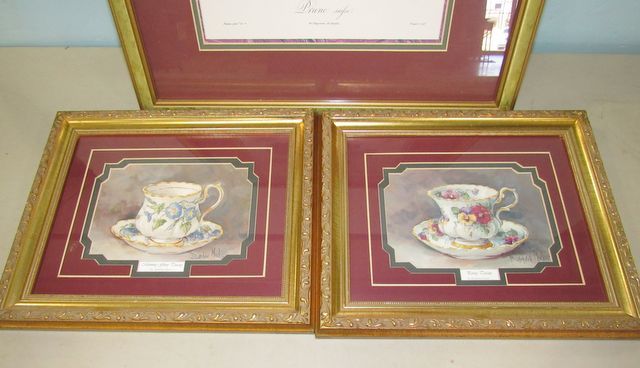 Morning Glory Teacup by Barbara Mock, Pansy Teacup by Barbara Mock 10"h., 12"w., Prune Suifse Print 21"h., 18"w. Morning Glory Teacup by Barbara Mock, Pansy Teacup by Barbara Mock 10"h., 12"w., Prune Suifse Print 21"h., 18"w.