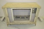 Sliding door tv cabinet with tv taken out, back is open, has control on side, veneer damage in spoits, 30"h., 45"w., 20"d. Sliding door tv cabinet with tv taken out, back is open, has control on side, veneer damage in spoits, 30"h., 45"w., 20"d.