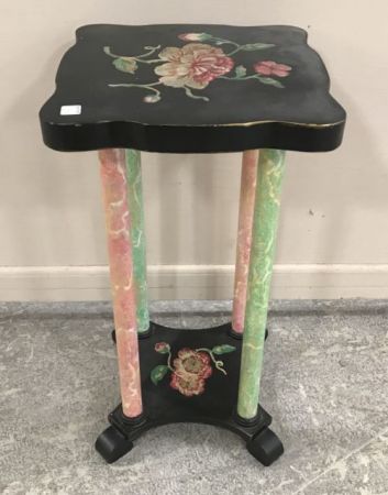 Decorative square painted with rose table, 30"h., 16"sq. Decorative square painted with rose table, 30"h., 16"sq.