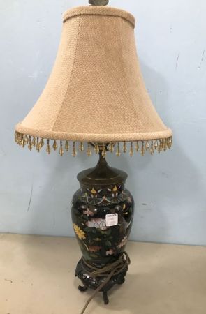 Oriental style ceramic vase lamp with oriental plant stand base, 27"h. Oriental style ceramic vase lamp with oriental plant stand base, 27"h.