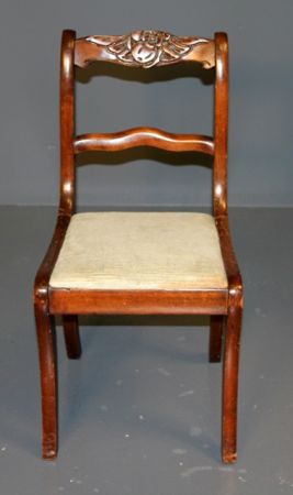 Child's Empire Side Chair with mint green fabric cushion. 21 3/4" h., 11 1/2" d., 11" w. Child's Empire Side Chair with mint green fabric cushion. 21 3/4" h., 11 1/2" d., 11" w.