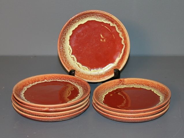 Set of Eight Plates; 6 3/4" dia., rust and yellow in color Set of Eight Plates; 6 3/4" dia., rust and yellow in color