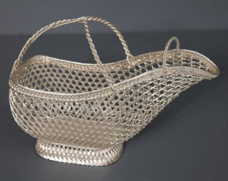 Silver Colored Metal Wire Bread Basket, 8" h., 11" w. Silver Colored Metal Wire Bread Basket, 8" h., 11" w.