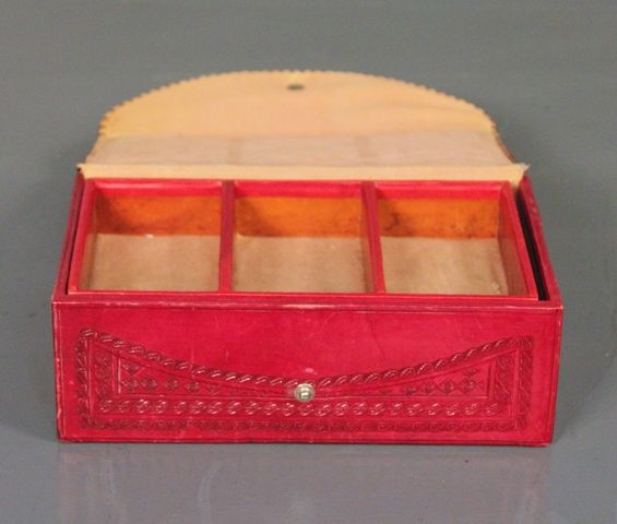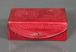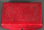 Red Jewelry Box Marked Made in Mexico, intricately designed with removable inner shelf; 8" l., 3" h., 5" d. Red Jewelry Box Marked Made in Mexico, intricately designed with removable inner shelf; 8" l., 3" h., 5" d.