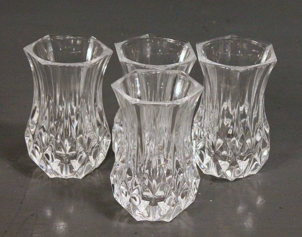 Set of Four Small Clear Glasses; diamond pattern on bottom, fluted top; 3" h., 1 3/4" dia. Set of Four Small Clear Glasses; diamond pattern on bottom, fluted top; 3" h., 1 3/4" dia.