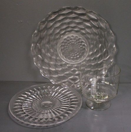 166 Glass Truffle Dish and Two Pressed Glass Under plates Description
