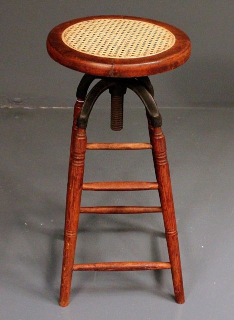 Vintage Oak Stool with Cane Inlay Vintage Oak Stool with Cane Inlay