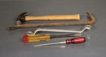 Group of Five Hand Tools; hammer, crowbar, two screw drivers, wrench Group of Five Hand Tools; hammer, crowbar, two screw drivers, wrench