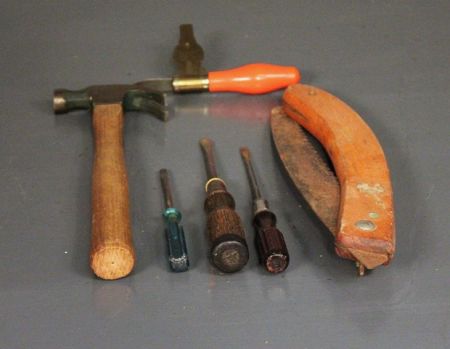 Group of Six Hand Tools, hammer, three screw drivers, folding knife saw Group of Six Hand Tools, hammer, three screw drivers, folding knife saw