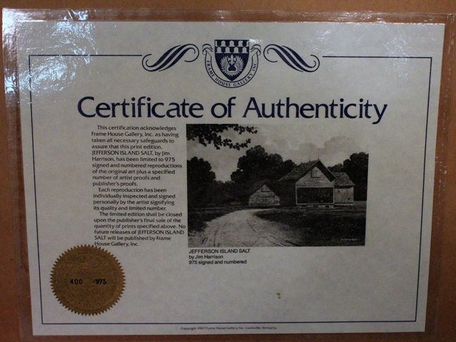194 Framed Jim Harrison Print of Jefferson Island Salt Description