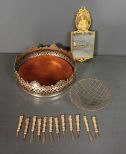 202 Group of Two Dish Decorations, Decorative Mirror and Set of 12 Flatware Pieces Description