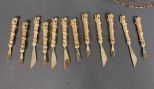 Group of Two Dish Decorations, Decorative Mirror and Set of 12 Flatware Pieces with flower and vine design (5 knives, 7 cocktail forks) Group of Two Dish Decorations, Decorative Mirror and Set of 12 Flatware Pieces with flower and vine design (5 knives, 7 cocktail forks)