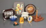 Groups of Nine Collectibles and Decorative Items; picture frame, two bowls, mug, elephant figurine, clock, two decorative wooden pieces and wooden stand Groups of Nine Collectibles and Decorative Items; picture frame, two bowls, mug, elephant figurine, clock, two decorative wooden pieces and wooden stand