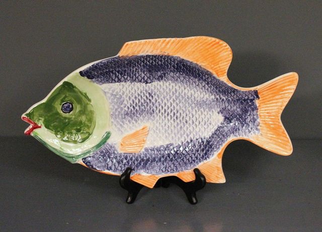 Hand Painted Fish Shaped Tray, 18" w., 10" h. Hand Painted Fish Shaped Tray, 18" w., 10" h.
