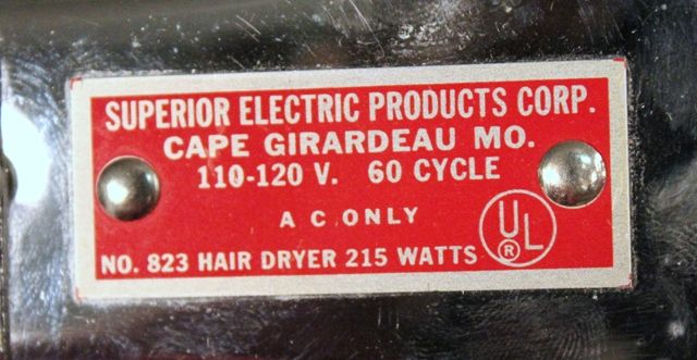 257 Vintage Superior Electric Products Corp. Hair Dryer Description