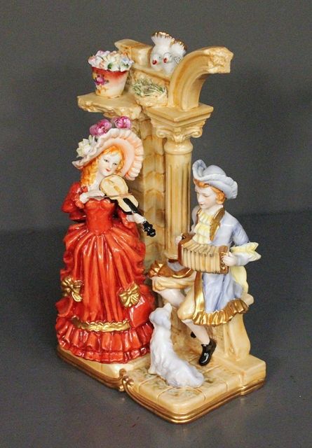 Dresden Figurine of Lady and Gent Playing Musical Instruments, made in Germany Dresden Figurine of Lady and Gent Playing Musical Instruments, made in Germany