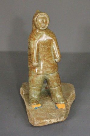 Unique Stone Statue of Eskimo on Base; has been repaired on right foot. 12" h. Unique Stone Statue of Eskimo on Base; has been repaired on right foot. 12" h.