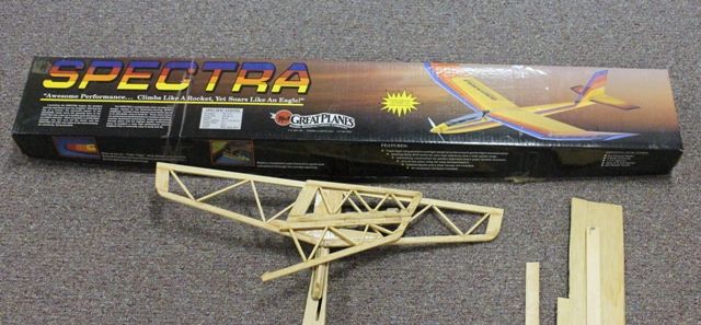 Spectra Electric Sail Plane; electrifly T-601 motor and electronic speed control; 78" wing span, 41" l., frame is finished, needs monokote which comes with kit, decals, extra wood and rubber bands (not included 6-7 cell battery and charger) Spectra Electric Sail Plane; electrifly T-601 motor and electronic speed control; 78" wing span, 41" l., frame is finished, needs monokote which comes with kit, decals, extra wood and rubber bands (not included 6-7 cell battery and charger)