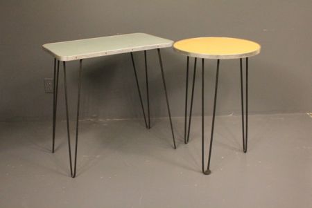 Pair of Vintage Formica Top Ice Cream Table; circular table (30" h., 20" dia.) rectangular table (30" h., 29" w.) Pair of Vintage Formica Top Ice Cream Table; circular table (30" h., 20" dia.) rectangular table (30" h., 29" w.)