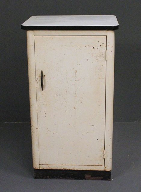 Vintage Enamel Top Metal Kitchen Cabinet; 36" h., 20" w. Vintage Enamel Top Metal Kitchen Cabinet; 36" h., 20" w.