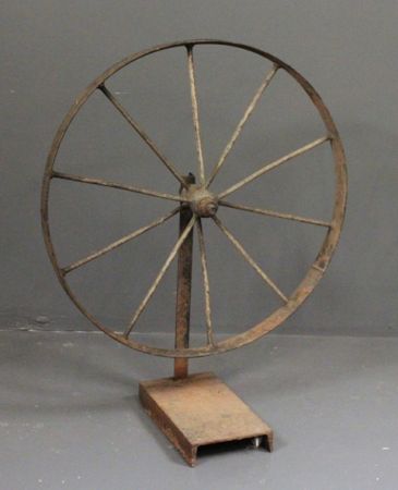 Iron Wheel on Stand; 36" h. Iron Wheel on Stand; 36" h.