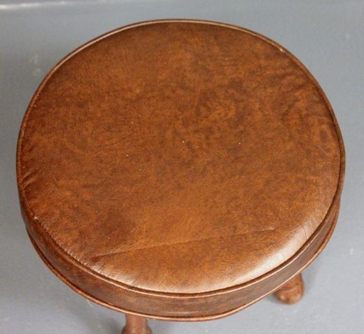 Footstool with Brown Leather Covered Cushion; 9" h., 14" dia. Footstool with Brown Leather Covered Cushion; 9" h., 14" dia.