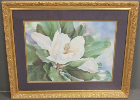 Magnolia Print Signed Gold Leaf Frame; 34"h, 28"w Magnolia Print Signed Gold Leaf Frame; 34"h, 28"w