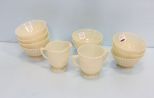 357 Nine Custard Glass Dishes & Creamer/Sugar