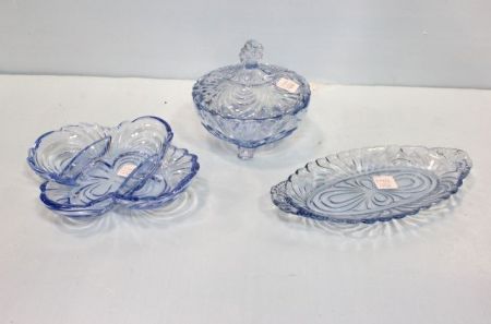 Including covered footed dish, 10" w. oval tray & divided dish Including covered footed dish, 10" w. oval tray & divided dish