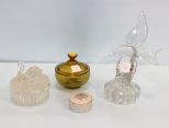 409 Two Covered Glass Jars, Porcelain Jar & Glass Bird