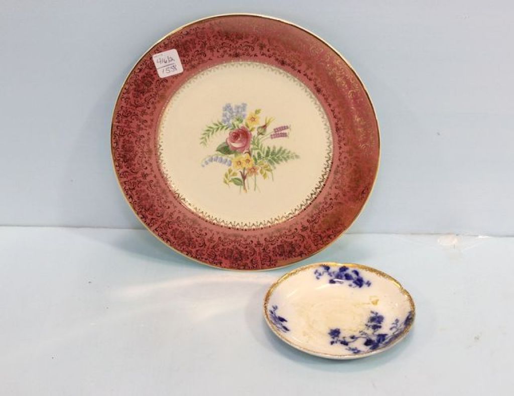 416 Flow Blue Saucer & Salem China Painted Dinner Plate
