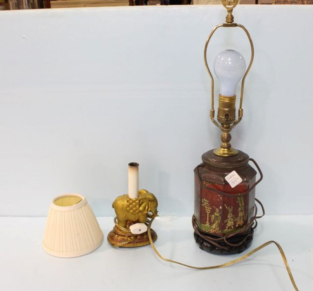 Oriental lamp- 20" h.; Elephant- 7" h. Oriental lamp- 20" h.; Elephant- 7" h.