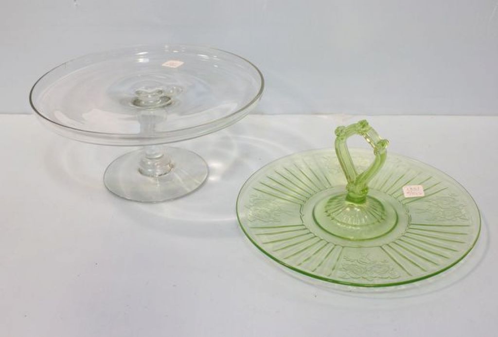 550 Depression Glass Cake Stand & Clear Glass Cake Stand
