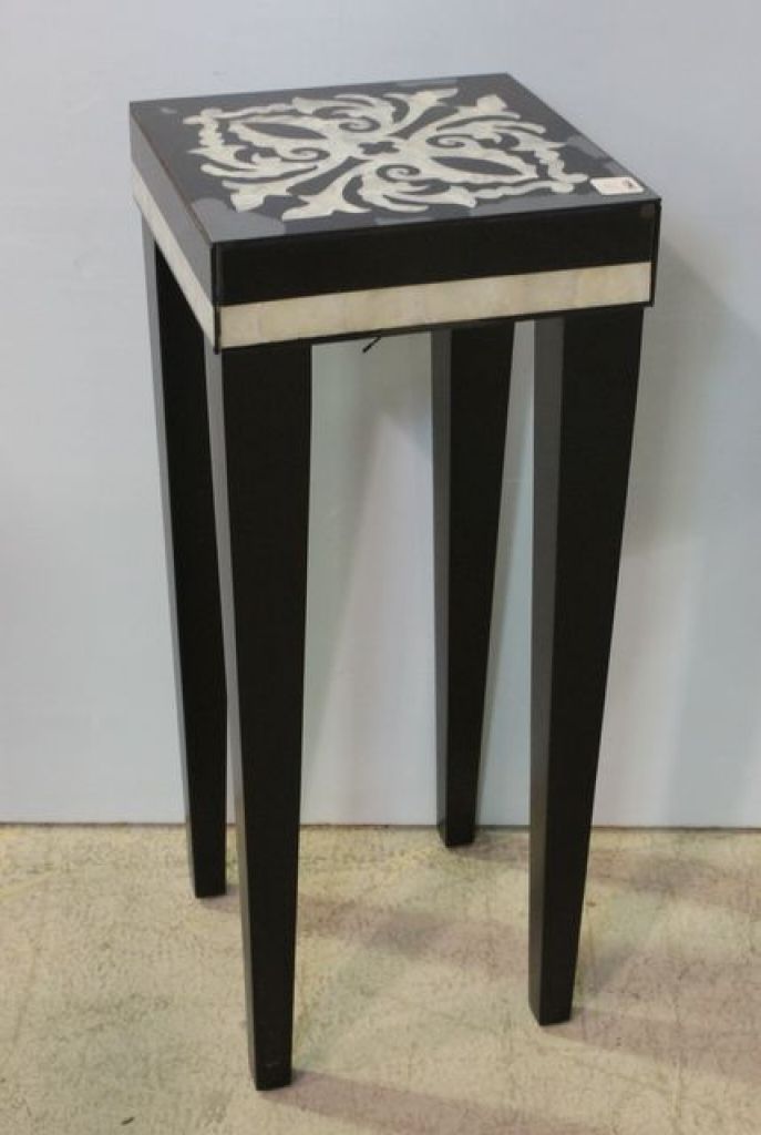 Made in Phillipines, with pearl scrolls.; 10" square, 26" h. Made in Phillipines, with pearl scrolls.; 10" square, 26" h.