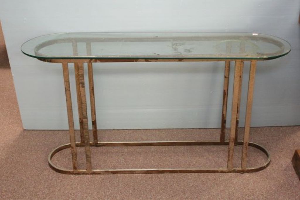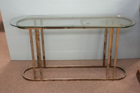 With metal base; 54" w., 16" d., 27" h. With metal base; 54" w., 16" d., 27" h.